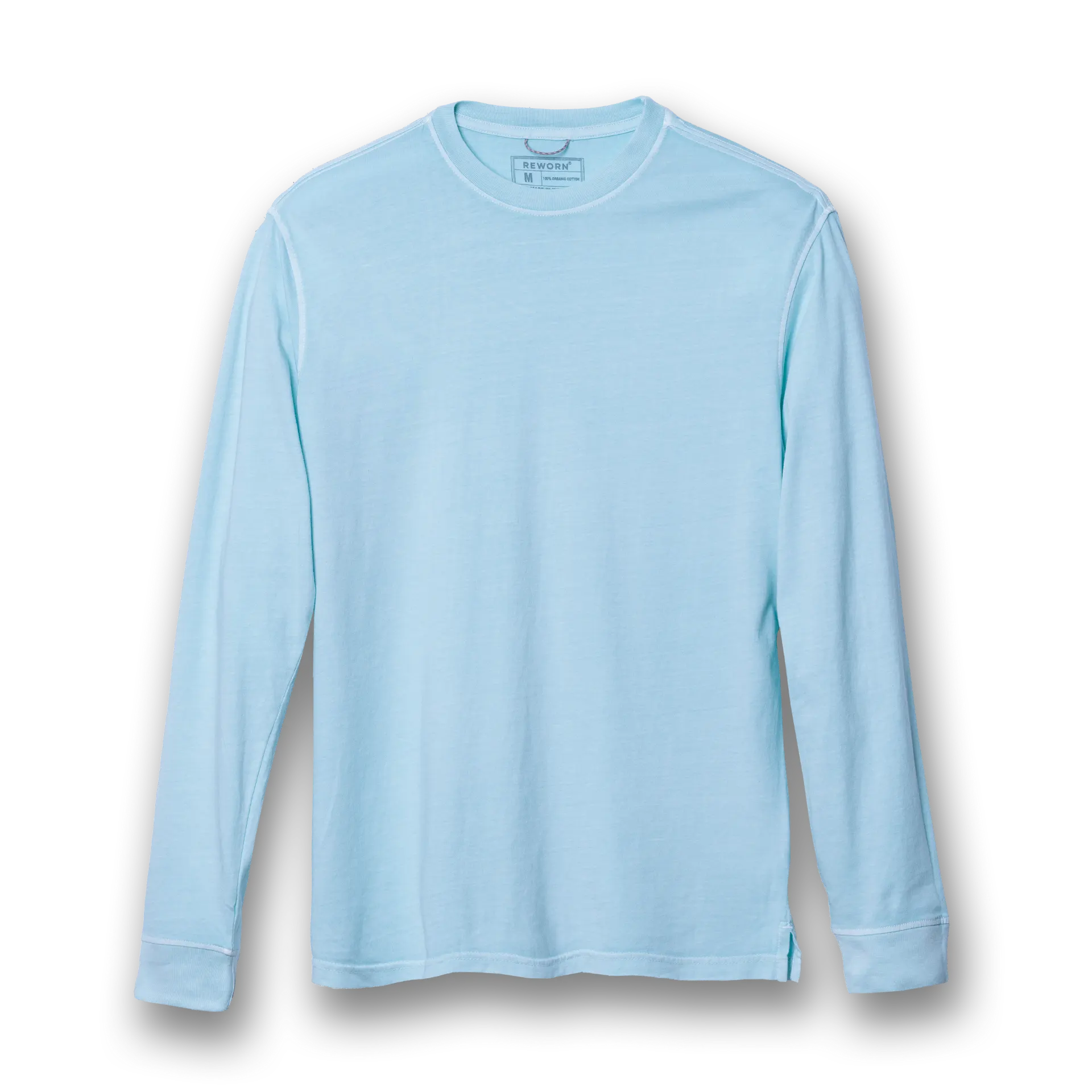 A classic long sleeve crew neck with ribbed neck and cuffs, signature Reworn loop at inside back neck, tag-less label, and split side vents to be worn out or tucked in.